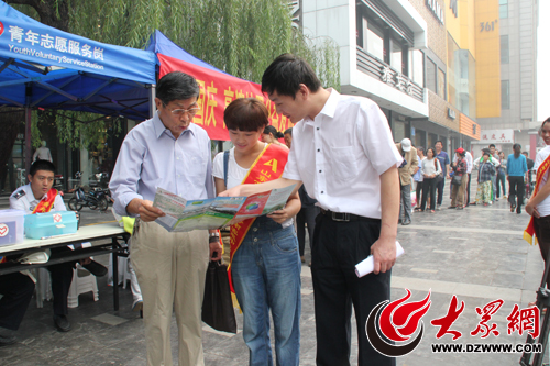 濟南的領取地點設在濟南泉城路芙蓉街,記者在現場看到,眾多市民排起了長長的隊伍,簡單的登記后即可免費領到一張地圖,地圖上有看不明白的地方,現場的工作人員還會仔細的向市民講解。