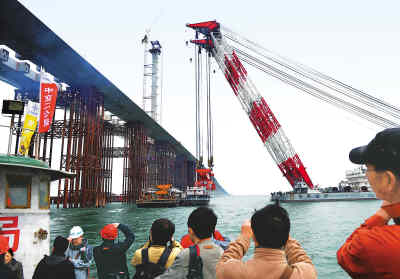 3月23日,青島海灣大橋大沽河航道橋成功合龍,這標志著世界首座海上大跨徑自錨式懸索橋順利合龍。大沽河航道橋為不對稱獨塔四跨連續鋼箱梁自錨式懸索橋,該橋型為海上橋梁世界首創。