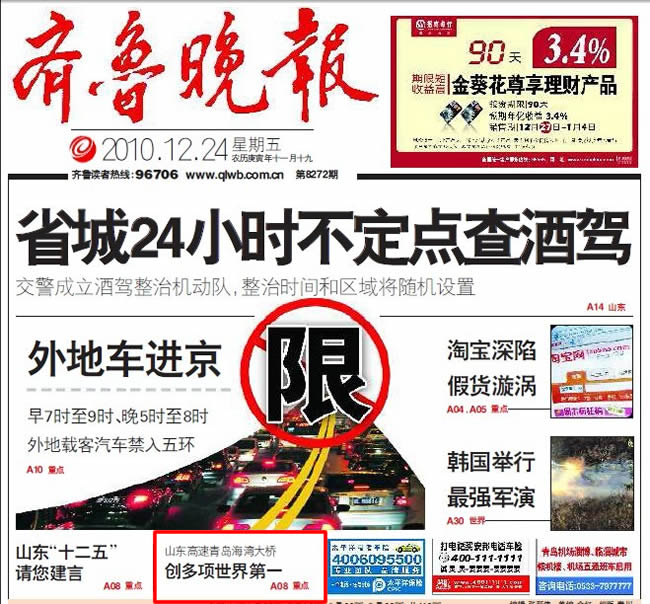 [齊魯晚報]山東高速青島海灣大橋創多項世界第一