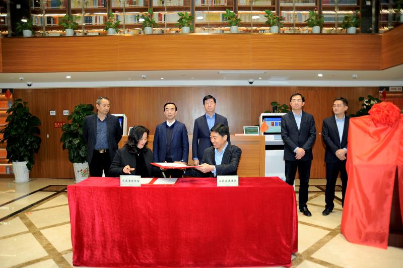 △集團黨委副書記、總經理徐軍峰與山東省圖書館黨委書記、館長劉顯世共同揭牌