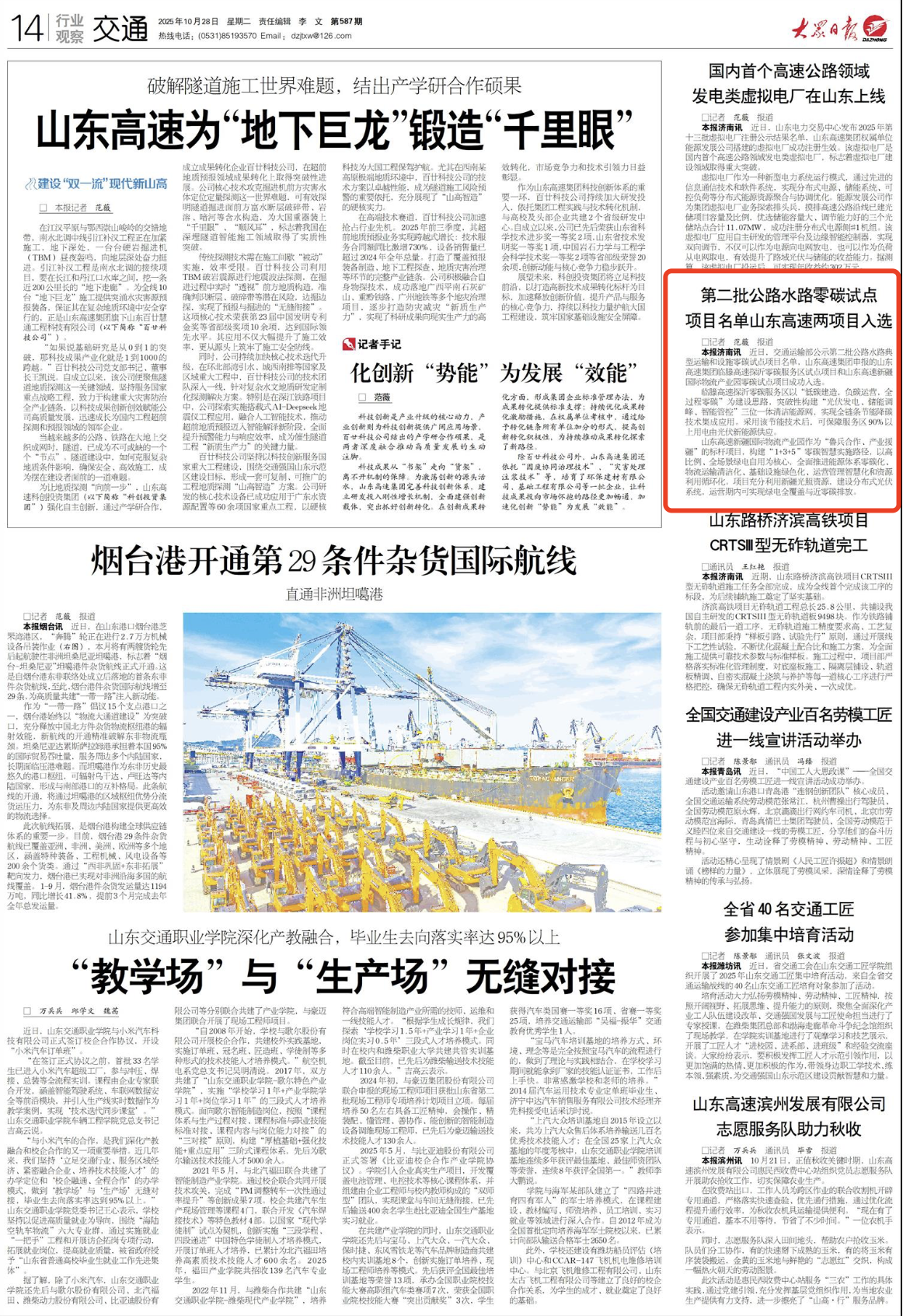 【大眾日報】第二批公路水路零碳試點項目名單山東高速兩項目入選